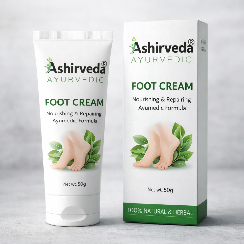 Ashirveda Ayurvedic Foot Cream is a powerful herbal solution for cracked heels, dry feet, and rough skin. Enriched with natural Ayurvedic ingredients, this foot repair cream deeply nourishes, softens, and heals damaged skin. Its fast-absorbing, non-greasy formula helps reduce heel cracks, dryness, and foot odor while restoring smooth, healthy feet. Ideal for daily foot care, this herbal foot cream provides long-lasting moisturization and protection. Suitable for all skin types, it supports natural skin repair and comfort.
