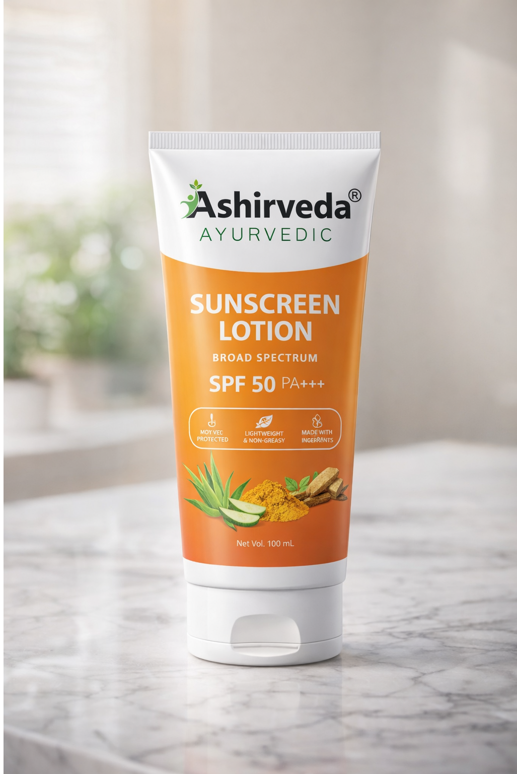 Ashirveda Ayurvedic Sunscreen Lotion SPF 50+ is a premium herbal sun protection formula enriched with natural Ayurvedic ingredients. It provides broad-spectrum UVA & UVB protection, helps prevent sunburn, tanning, and premature aging, and keeps skin hydrated, smooth, and radiant. Lightweight, non-sticky, and suitable for daily use on all skin types.