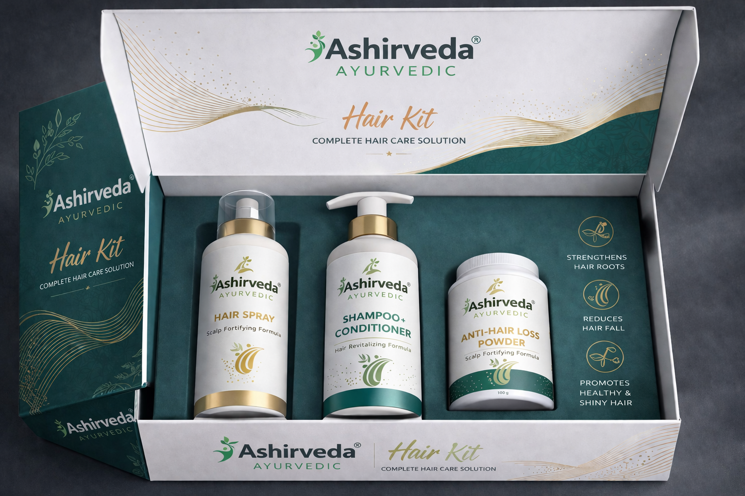 Ashirveda Ayurvedic Hair Care Kit is a premium herbal formulation designed to reduce hair fall, strengthen roots, and promote healthy, shiny hair naturally. Enriched with powerful Ayurvedic ingredients, this complete hair care solution includes hair spray, shampoo with conditioner, and anti-hair loss powder, working together to nourish your scalp and restore hair vitality.