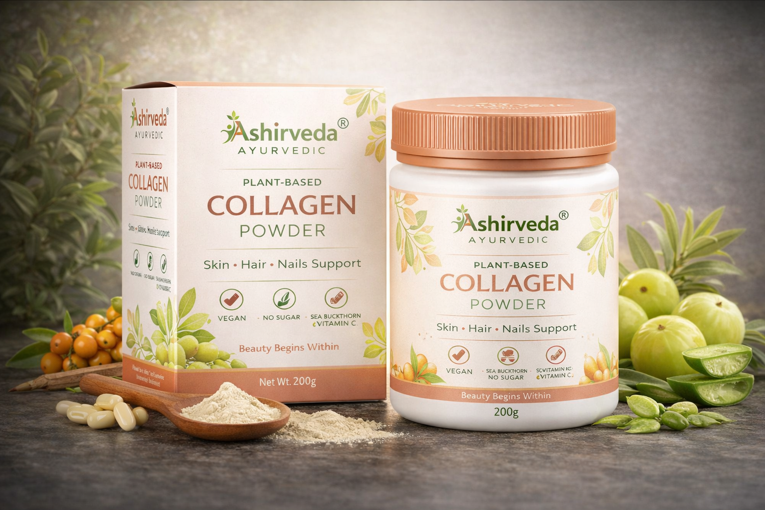 The premium vegan Ashirveda Ayurvedic plant-based collagen powder is made to naturally promote the development of collagen for stronger, healthier skin, hair, and nails. Enriched with potent herbal constituents like sea buckthorn and amla, as well as vital nutrients like vitamin C and biotin, it helps produce a natural glow from within, improve skin suppleness, and lessen indications of aging.