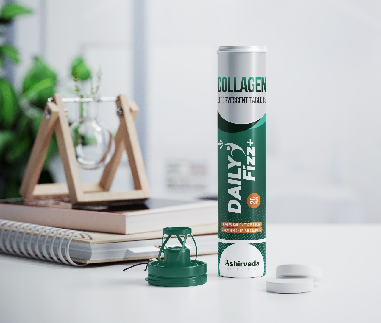 Ashirveda Ayurvedic Collagen Effervescent Tablets are your natural solution for radiant, youthful skin and strong nails. Enriched with pure collagen and Ayurvedic herbs, these effervescent tabs help reduce signs of aging, improve skin elasticity, and promote hydration from within. Just dissolve in water for a refreshing, easy-to-consume daily dose that supports joint health, hair strength, and overall vitality. Crafted with the principles of Ayurveda, it’s a safe and natural way to boost your body’s collagen levels. Experience the perfect blend of modern convenience and traditional wellness with Ashirveda Collagen Effervescent Tablets.